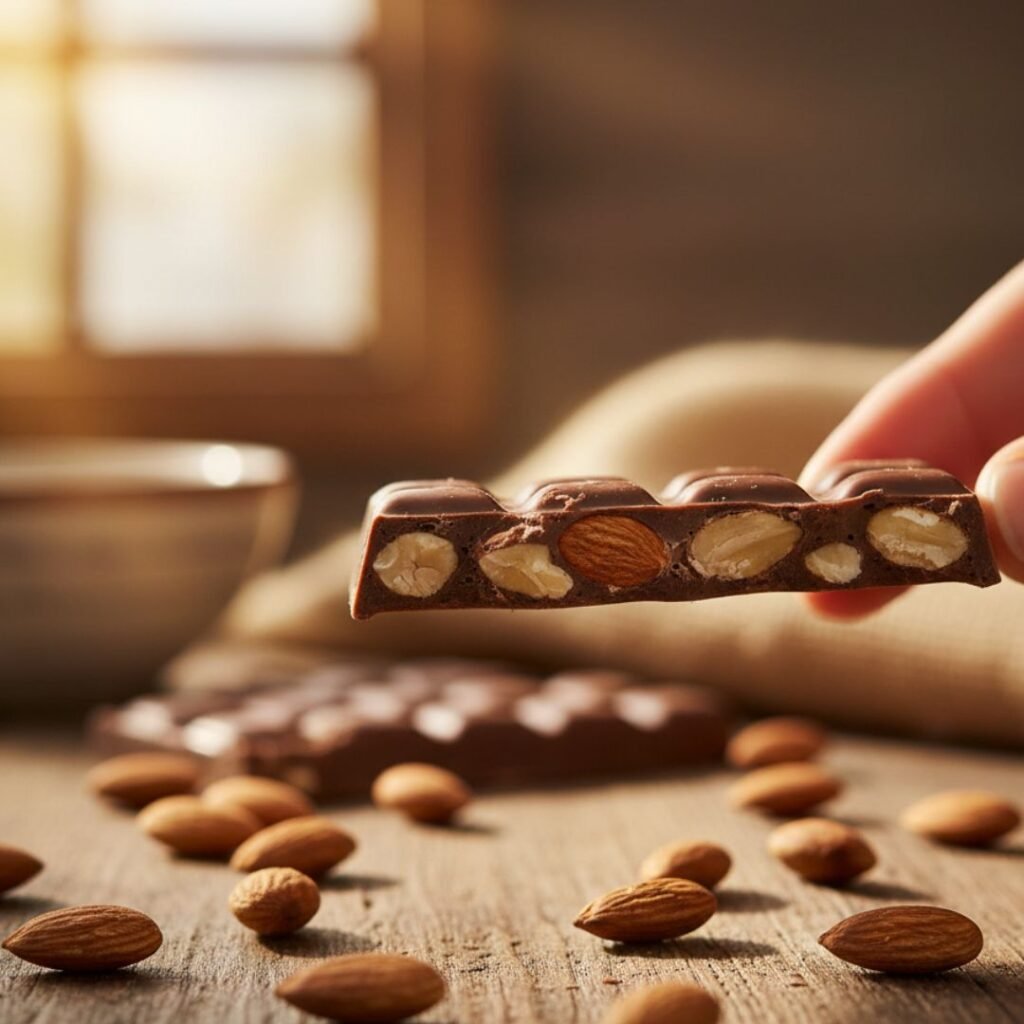 Cremoso chocolate con leche combinado con el crujido perfecto de almendras recién tostadas.