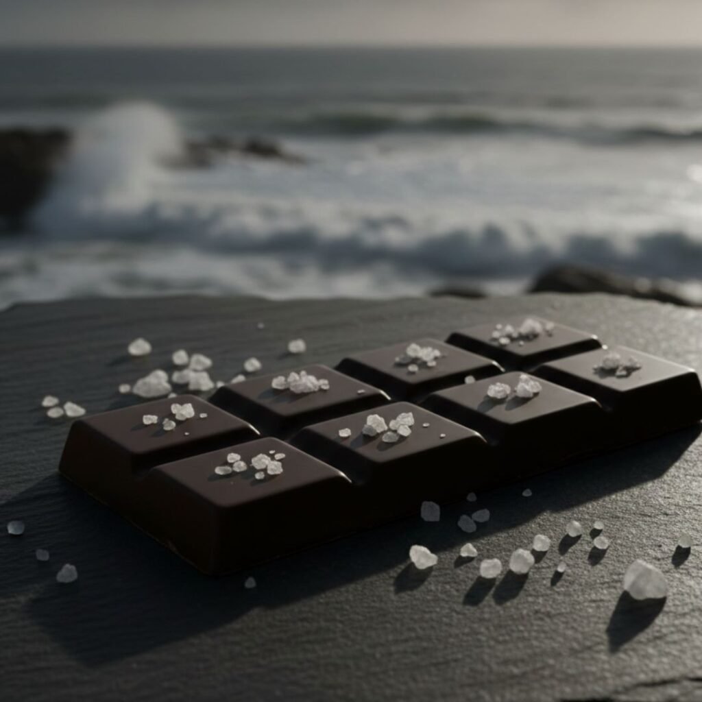 El contraste perfecto entre la intensidad del cacao amargo y cristales de sal marina.